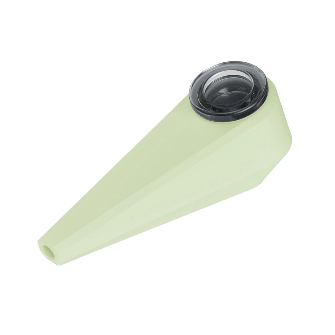 The Softglass Aura Token Hand Pipe boasts a unique design feature with its glow-in-the-dark silicone and charcoal glass materials. This hand pipe is the ideal choice for everyday use. Notable features include a built-in brushed stainless steel pipe tamper and a convenient silicone bowl cover that can be stowed away when not in use. It's also incredibly easy to clean and virtually indestructible. Where will this hand pipe accompany you?