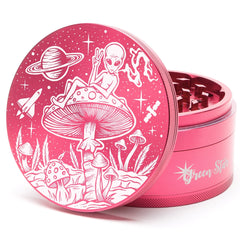 Take a walk on the wild side with the Green Star Creature Large 4-Piece Grinder. These massive grinders are made with high-grade anodized aluminum and have a diameter of 4” inches. They feature razor-sharp diamond teeth to easily shred your dry herb and a pollen screen to sift your kief into a bottom chamber. The kief can be easily handled and packed with the included scraper tool for when you want your sessions to hit extra hard. Green Star offers these grinders in multiple eye-catching designs and colors, making them suitable to everyone’s preferences. Between the low price, high-quality build, and stunning designs, you can’t go wrong with the Green Star Creature Large 4-Piece Grinder.