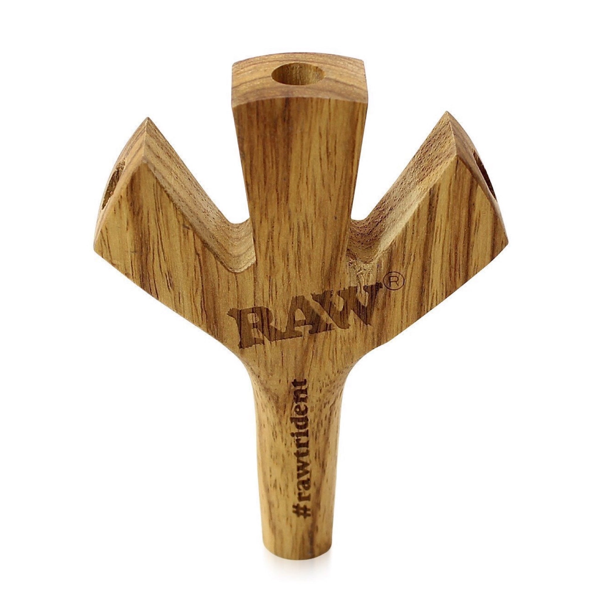 Raw® Trident Wooden Joint Holder Made from Brown Knotwood Fits up to 3 Rolled Joints Burned in RAW Decal Burlap Carrying Bag Unique Trident Shape Great Gift Idea for Stoners Authentic Raw Brand Product