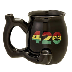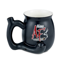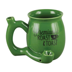 Part of a balanced breakfast of champions, the Roast & Toast Coffee Mug Pipe is guaranteed to get you going in the morning. The smaller version pipe mug from the originators at Premium Roast & Toast, this mug has an 11oz volume that is the perfect size for a spot of tea (with a hint of tree!). Unlike its larger double-walled counterpart with an internal air path, the built-in mouthpiece handle continues down the side and front of the mug to create a small spoon-style flower bowl on the front. A built-in air carb just below the bowl gives you full control over the size of each morning rip, while the fully ceramic design makes this hand pipe completely dishwasher & microwave safe just like any other mug! Choose your favorite color and enjoy the smaller, more portable version of the original pipe mug from Premium Roast & Toast.